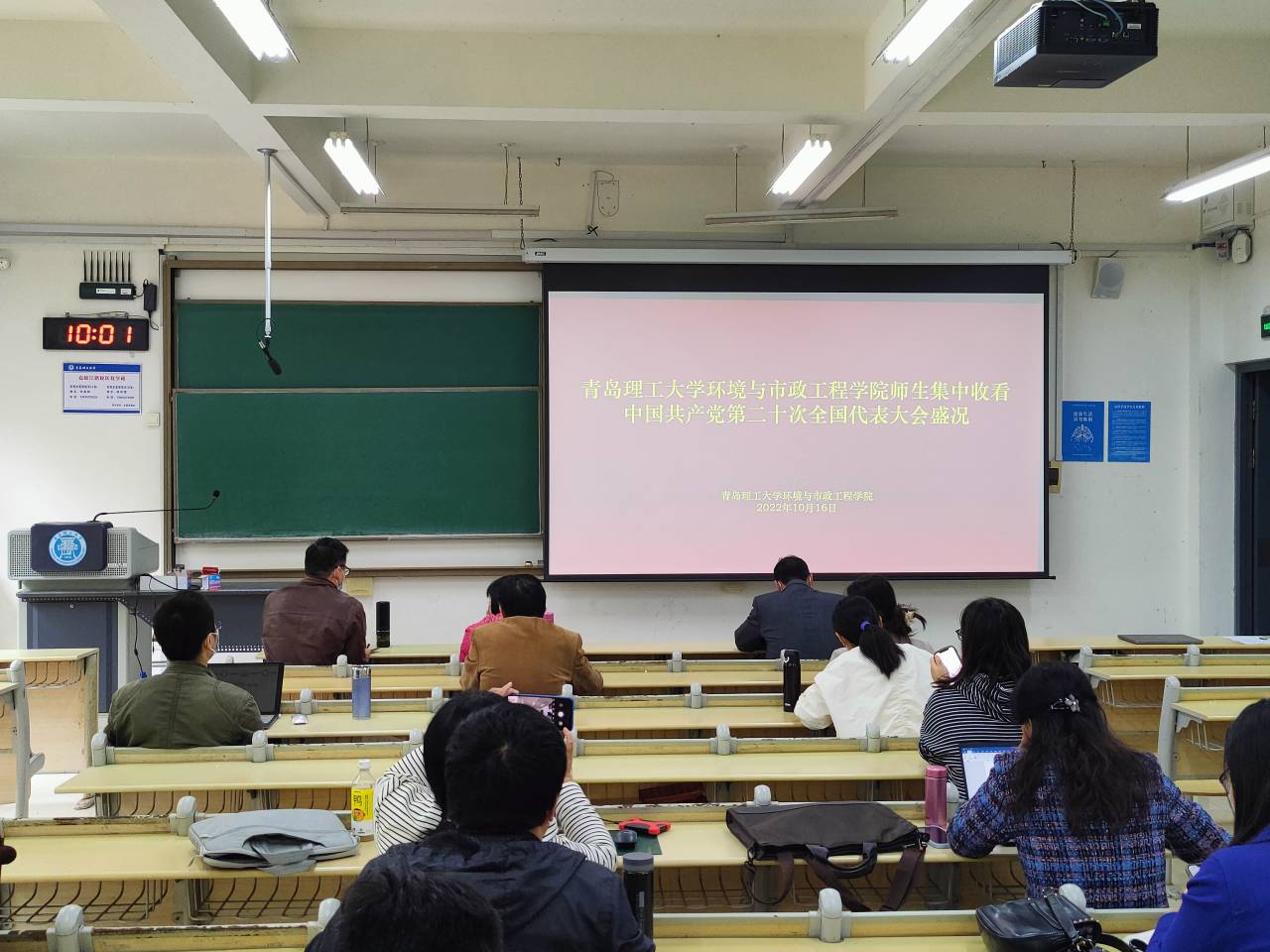 中国共产党第二十次全国代表大会于10月16日上午10时在北京人民大会堂隆重召开。环境与市政工程学院101名教工党员、237名学生党员以及1412名积极分子代表、优秀学生干部代表分别在20个教室收听收看了党的二十大开幕会盛况,认真聆听了党的二十大报告。