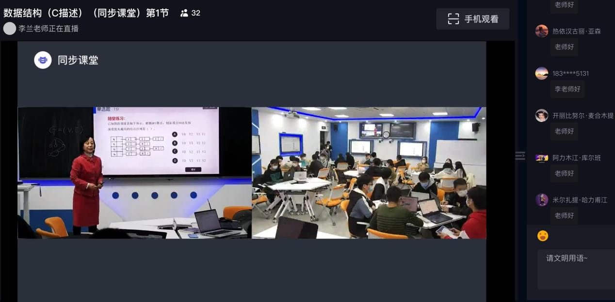 为积极响应教育部倡导,精准支持西部教学,信息与控制工程学院参与智慧树联合东西部高校课程共享联盟共同发起的慕课西行活动,于11月21日开展线上联合教学。本次课堂由信息与工程学院李兰教授授课,我校21级计算机科学与技术专业40余名学生与喀什大学学生共同参与本次课堂,喀什大学学生在线上参加。