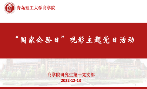 观看电影铭记历史。商学院研究生第一党支部组织支部党员学习了有关南京大屠杀的文献记载,随后组织支部党员线上观看电影《南京!南京!》。观影过后,同学们纷纷表示,作为当代青年学生,要牢记民族苦难历史,明确“只有中国共产党才能救中国,才能发展中国”的真理,“坚定不移听党话、跟党走,怀抱梦想又脚踏实地,敢想敢为又善作善成,立志做有理想、敢担当、能吃苦、肯奋斗的新时代好青年,让青春在全面建设社会主义现代化国家的火热实践中绽放绚丽之花。”