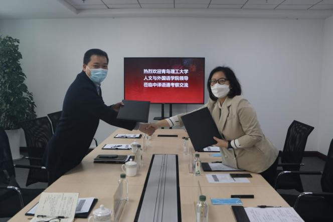 为进一步推动校企合作协同育人,提升人才培养质量,12月13日上午,人文与外国语学院党委书记卢新明一行前往中译语通科技(青岛)有限公司走访并签订实践育人基地协议。人文与外国语学院党委副书记兼副院长林海涛、副院长莫玉梅、院长助理张成福、日语教研室主任刘洁和副主任孙玮参加活动。
