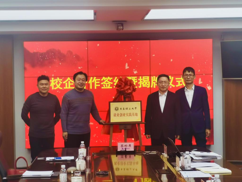 于建勇对邵先锋、王中帅一行表示热烈欢迎,带领大家参观了中建筑港发展史展厅,双方在会议室就校企合作、实习实训建设等进行交流。于建勇介绍了集团的发展历程和企业文化。他指出,公司始终坚持人才兴企战略,公司的发展离不开人才的支撑,希望以此次活动为切入点,加强校企合作的深度和广度,进一步探索与学校在科研合作、人才培养、毕业生就业等方面建立长期、深入的战略合作关系。邵先锋介绍了土木工程学院学科特色、专业优势、人才培养、创新创业、2023届毕业生情况等,希望与集团建立日常联系互访机制,通过深度合作实现优势互补,提高人才培养质量。王中帅介绍了管理工程学院发展历程、学科专业、人才培养、2023届毕业生情况,希望以此次契机努力实现“校企合作、产学双赢”,增加学生实习就业机会,助力学生的成长成才。双方通过交流达成意向,将以本次校企合作为契机与起点,联创先进产学研基地、联手共促技术研发、联心共谋校企双赢,实现校企资源共享、品牌共创、价值共生、互学联建。邵先锋、王中帅与朱广志代表校企双方签订《就业创业实践基地协议》,双方领导为“就业创业实践基地”揭牌。