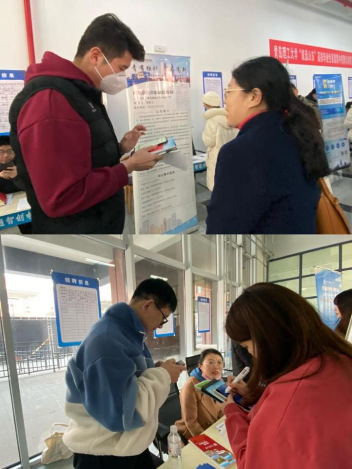 大量岗位来袭,全都是令人心动的offer。招聘会吸引了包括中建八局轨道交通建设有限公司、赛轮集团股份有限公司、海尔智家股份有限公司、中建科工集团有限公司、青岛雷神科技股份有限公司等213家知名企业参加,涵盖制造业、建筑业、服务业、交通运输业等多个行业领域,为广大毕业生提供了多类型、多层次的就业选择。累计提供就业岗位5607个,投递简历数3759,招聘会现场初步达成意向数990。“公司环境怎么样?”“员工福利待遇怎么样?”求职的同学们热情高涨,穿梭于各企业的展位前仔细阅读企业概况和招聘专业,详细地询问岗位要求和待遇情况。企业的HR热情回应,打出各种“优厚薪酬”“人文关怀”“福利待遇”等王牌来争抢人才。