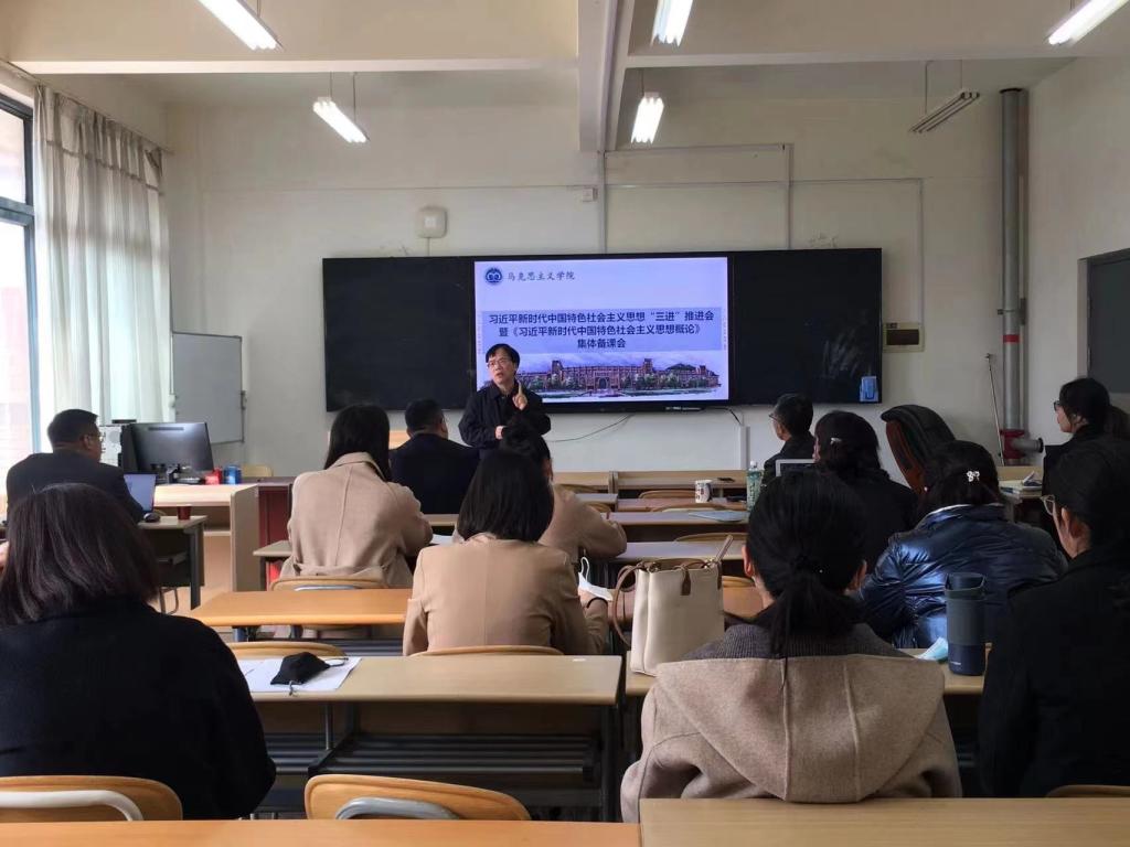 为深入贯彻落实习近平总书记在学校思想政治理论课教师座谈会上的讲话精神,做好推进习近平新时代中国特色社会主义思想的“三进”工作,3月18日,马克思主义学院召开了习近平新时代中国特色社会主义思想“三进”推进会暨《习近平新时代中国特色社会主义思想概论》集体备课会。学院党总支书记陈国庆、院长华章琳、副院长刘金德、院长助理石峰、各教研室主任及部分老师参加了会议。