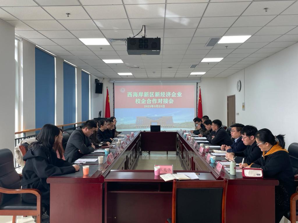 3月23日上午,青岛西海岸新区新经济发展促进中心组织新经济企业在我校举行新经济校企合作对接会,共同研究探讨新经济相关领域学科建设、人才培养、校企合作等事宜。西海岸新区新经济发展促进中心,澳柯玛集团、青岛明月海藻集团有限公司、尊道传媒集团等相关负责人,学校合作发展处、人文社科处、学生处、商学院、人文与外国语学院等部门学院负责人以及相关学科负责教师参加对接会。会议由合作发展处处长鞠志强主持。