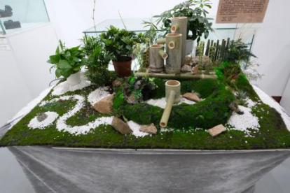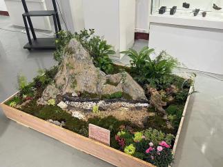 《植物造景》课程展览包括了“重启-末日生机”“寻桃园行”“自愈自然”“叠趣绿谷”“溯·屿”“桃园梦泽”和“潘隅竹音”等七个主题的微景观。《园林植物与应用》展区展出了学校市北校区VR地图,还有一些文创产品的加入,如印有植物青岛理工大学市北校区地图的帆布包,手绘植物贴纸,植物拓染工艺,可以种出植物的卡片等,这些产品不仅能够满足同学们的个性化需求,也具有商业推广和环保意义。