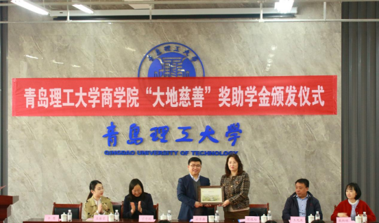 山东大地公益慈善基金会代表陈晓培致辞,她表示,青岛理工大学“大地慈善”奖助学金项目是基金会奖助学金公益项目合作的首所高校,资助金额拾万元,旨在定向奖助青岛理工大学商学院学生,打造具有“大地”特色的实习实践基地,践行产教融合培养,鼓励学生勇攀学术高峰,助力同学们成长为契合行业需求的高端复合型人才。