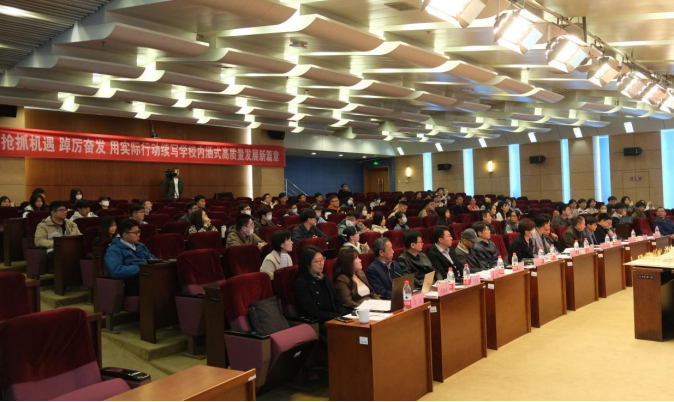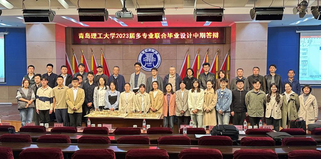 为探索人才培养新模式,培养学生解决复杂工程问题的能力,提升学生团队合作与沟通水平,学校首次针对2023届毕业生实施跨学院多专业联合毕业设计。毕业设计选题来自校科技发展集团的实际工程项目-青岛艺悦度假酒店设计,由建筑、结构、造价、室内设计、水、电、暖等7个不同专业20名学生联合完成设计。为检验跨学院联合毕业设计的阶段性成果,4月14日下午,学校在市北校区学术报告厅举行中期答辩会议。校内外评审专家、联合毕业设计指导教师团队、学生团队、各学院部分毕业生和教务处有关人员100余人参加了会议。会议由建筑与城乡规划学院解旭东教授主持。
