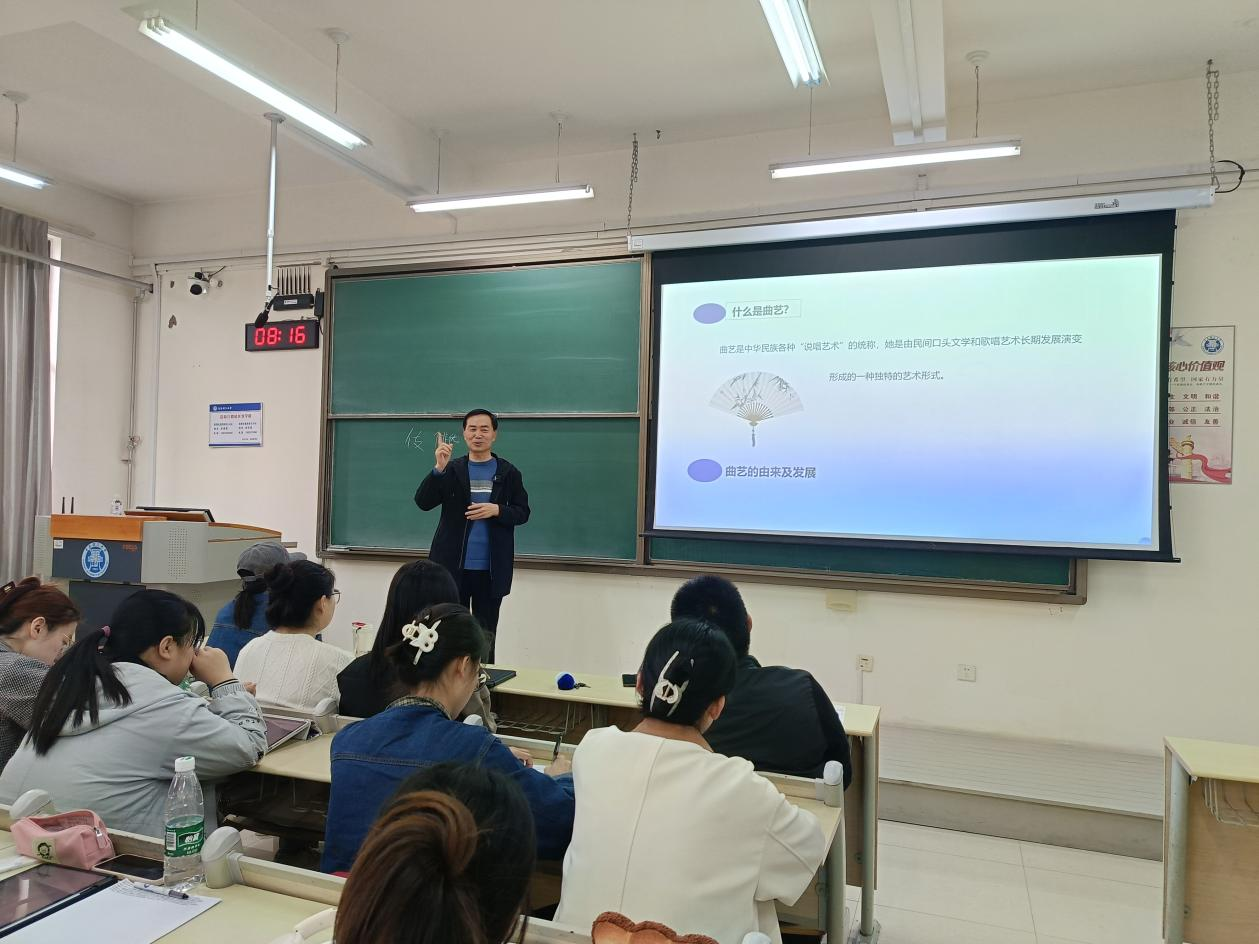 陈建民强调,曲艺文化历史悠久,具有极强的趣味性和艺术感染力。他说道:“我今天为大家分享我国的民间文化瑰宝——曲艺文化,是希望大家能多了解一些曲艺方面的知识,能更深入地体会中国传统民间艺术的魅力,如果有同学能由此而进行艺术创作就更好了!”