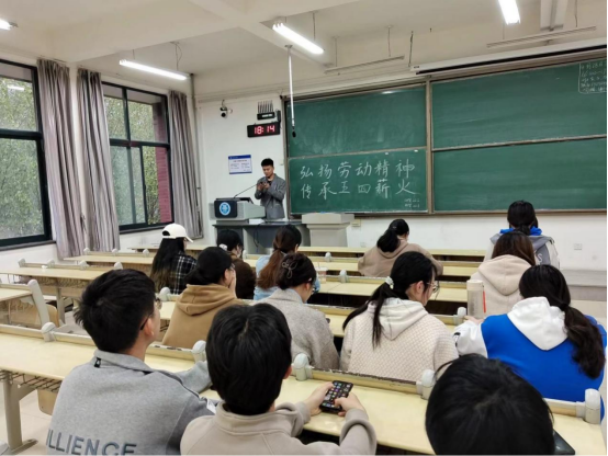 商学院在五四期间组织学院党员领航员联系各班级团支部,讲授以“弘扬劳动精神,传承五四薪火”为主题的微团课,用党史故事分享、座谈交流等形式传递榜样精神,充分发挥榜样的示范带动作用,激励商院学子“见贤思齐”。学校优秀团员青年标兵,党员领航员胡书卿,为国商201团支部讲授主题微团课,以学院优秀团员青年的故事为例,呼吁同学们勉励自我、完善自我,用自己的实际行动践行青年理想抱负。“锤炼艰苦努力、踏实肯干的个人品质,提升热爱祖国、忧国忧民的精神修养,以实现中华民族伟大复兴为己任,不辜负党的期望、人民期待、民族重托,不辜负我们这个伟大时代!”胡书卿慷慨激昂的演讲感染激励着在座每位学子,让青春在全面建设社会主义现代化国家的火热实践中绽放绚丽之花。