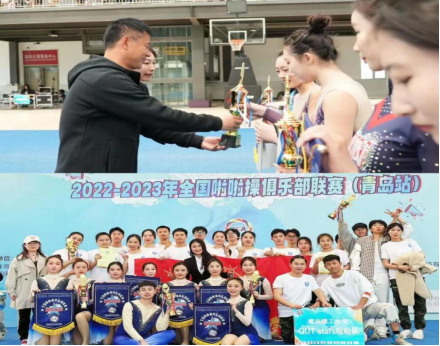2022-2023年全国啦啦操联赛(青岛站)由国家体育总局体操运动管理中心和中国蹦床与技巧协会主办,采取网络直播与线下比赛的方式,于4月28日至4月30日于山东省青岛市举行,共有来自全国的1000名运动员参赛。我校派出38名队员,共获得学校U28组(28岁及以下)——双人爵士自选动作、双人花球自选动作、双人街舞自选动作、集体爵士自选动作、集体花球自选动作和集体街舞自选动作六个项目冠军。