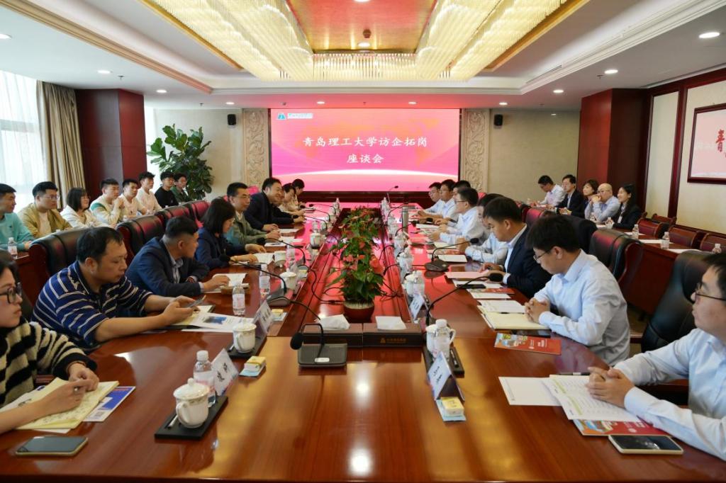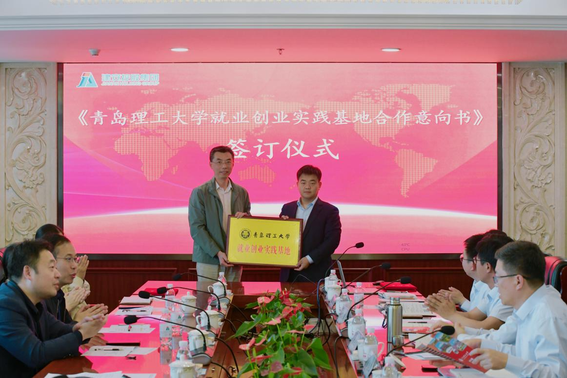 07届校友、市场营销管理部副总经理孙道新,12届校友秦文志分别发言,感谢母校四年的培养为自身发展打下的坚实基础,今后一定会继续学习、努力工作,为集团和母校的发展贡献力量。会议最后,校企双方就供需对接、人才培养等展开热烈交流,就合作具体事项达成一致,签署《青岛理工大学就业创业实践基地合作意向书》,并进行授牌仪式。