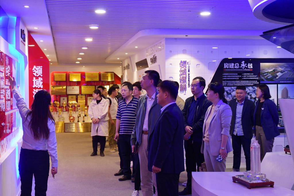 师生一行首先到企业展厅进行参观,通过照片墙、4D影片等沉浸式感受集团发展历程,体悟“匠心”精神。座谈会上,武志宏对师生一行到访表示热烈欢迎,并从集团战略定位、人才体系、责任担当等方面作介绍。他表示,集团始终处于稳步发展中,在各类工程建设实施过程中,培育出一大批优质青年人才,其中就有近160名理工优秀学子。学校一直热爱并深耕于建筑领域,正是因为这份热爱我们走到一起,希望接下来能够进一步拓宽合作广度,创造更大的合作机遇。牟永川从对口专业近年发展情况、学校整体发展等方面进行介绍,希望集团给学校专业设置能够提出更多导向性建议,在项目共建、实习实训等方面促进产学研用深度合作,实现共享、共融、共赢,打造人才引育工作新支点。