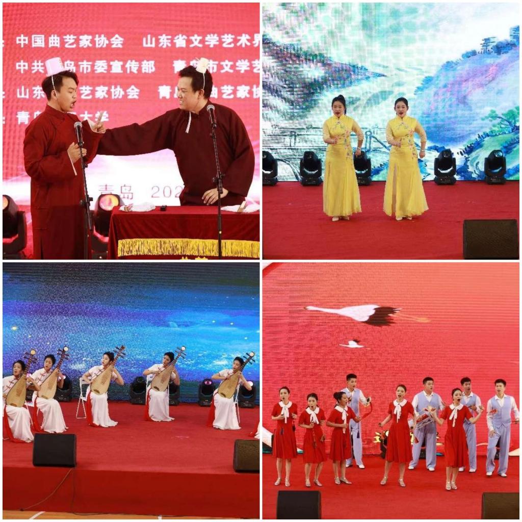 曲艺文化进校园,传统艺术润人心。为深入学习宣传贯彻党的二十大精神,培养青年学生文化创新意识,5月20日晚,第三届大学生曲艺周展演活动在青岛理工大学西海岸新区主校区风雨操场举行。中国曲协评书艺委会主任、评书表演艺术家杨鲁平,山东省曲艺家协会主席慈建国,青岛市文联副主席、二级巡视员赵均民,中国曲协活动管理处副处长张小卫,我校商学院党委书记王粲,校团委副书记李晓霞及全校500余名师生共同观看了演出。