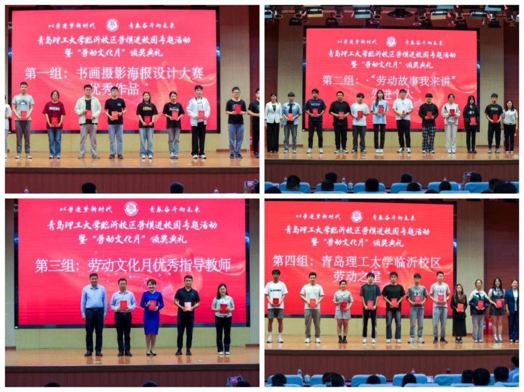 为贯彻落实《中共中央国务院关于全面加强新时代大中小学劳动教育的意见》精神,教育引导学生崇尚劳动、尊重劳动、热爱劳动,创造性劳动,青岛理工大学临沂校区开展了历时一个月的“以劳逐梦新时代青春奋斗向未来”劳动文化月主题活动。5月24日,临沂校区在图书馆报告厅举行劳模进校园活动暨“劳动文化月”闭幕式,临沂校区党委副书记李国涛,费县总工会副主席王立龙,费县融媒体中心主任编辑、副台长孙百琴,学生工作部主任张传亮参加活动并颁奖,500余名师生参加。