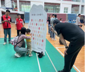 本次活动包含多个运动游戏环节,在整体设计上立足教育性、着眼趣味性、突出互动性,让孩子和家长们在游戏中增长知识、乐享节日。场地中设计了一块特殊的“画布”,到场的小朋友们拿起画笔,在画布上描绘出自己独特的头像,这既是一次特殊的“签到”,也是孩子们缤纷童心的展现。