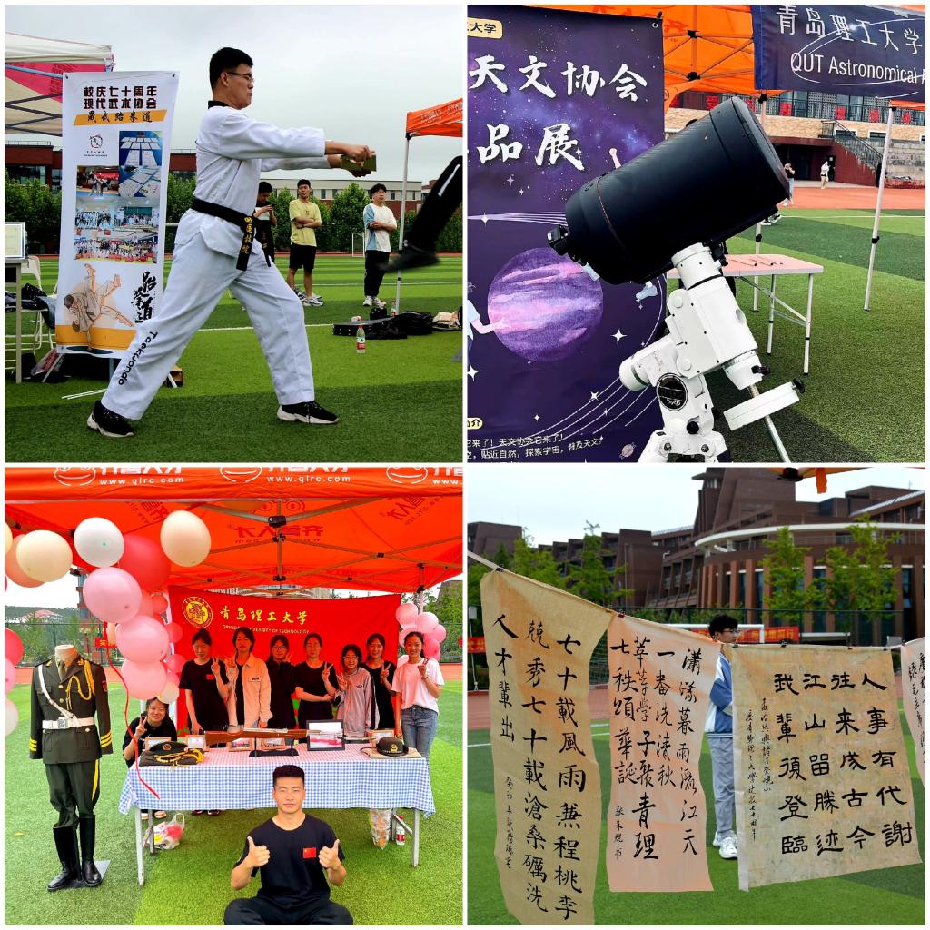 社团展风采,筑梦正当时。为丰富校园文化生活,展现大学生朝气蓬勃、奋发有为的精神面貌,献礼我校70周年校庆,5月31日下午,“七彩青春迎校庆,踔厉奋发勇前行”青岛理工大学第十六届社团文化节之社团文化作品展在西海岸新区主校区东操场顺利举办。