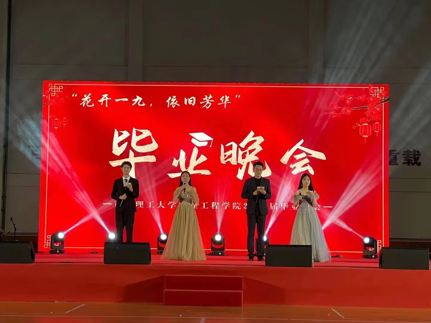 晚会上首映了2023届毕业MV《昨日青空》,播放了学院领导、老师对毕业生寄语MV。歌曲《生活因你而火热》正式拉开了晚会序幕。每一个节目、每一声祝福都唤起了毕业生们的深情回忆和对未来的美好期许,感动了在场的每一位同学。学院领导、老师、辅导员代表共同为毕业生献上歌曲《朋友》,将晚会推向高潮,表达学院对毕业生深深的祝福。最后,毕业生代表与毕业班辅导员带领大家合唱主题曲《昨日青空》,鲜衣怒马少年时,不负韶华行且知,表达着不舍与祝福。