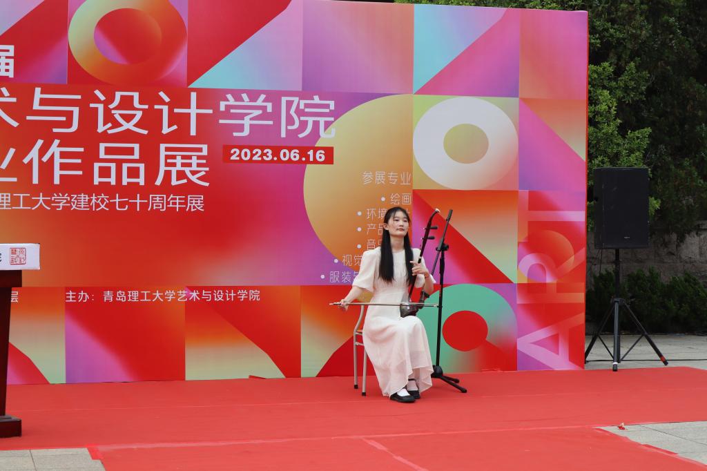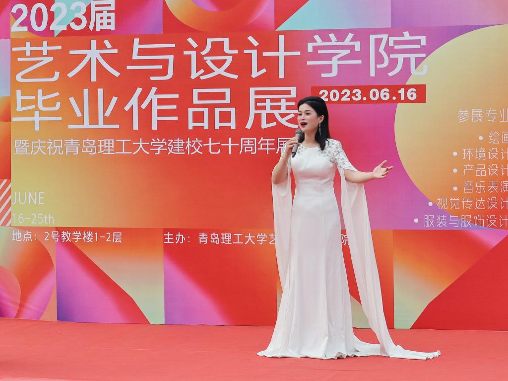 音乐表演专业和服装与服饰设计专业毕业作品在开幕式展出,音乐系教师张珊珊带来了一曲女高音独唱《我和我的祖国》,音乐191班的孙琪慧同学用二胡演奏了《青花瓷》,音乐191班的李鹤、董楚涵等同学合唱了《人世间》。服装设计专业的毕业作品由服装191班的15名同学进行设计制作,并由他们进行了精彩展示,音乐系教师韩凯以男高音独唱《我爱你中华》将现场气氛推向高潮。党委副书记、副院长徐佐君对毕业生致以饱含深情的祝福,对即将远行的学子表达了不舍之情,并鼓励他们永远保持对艺术的热爱和激情,勇往直前,追求创新。
