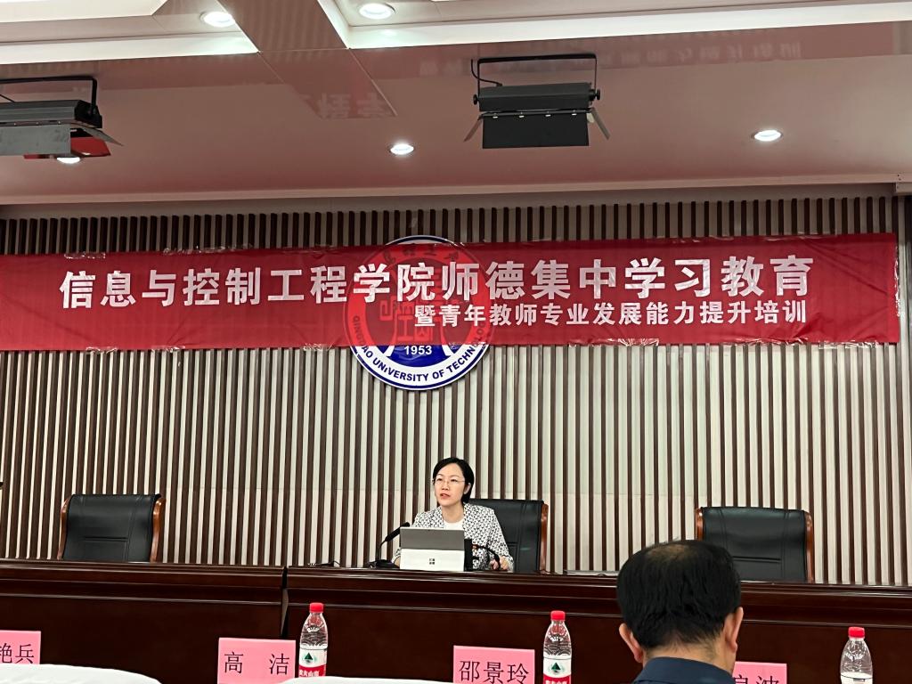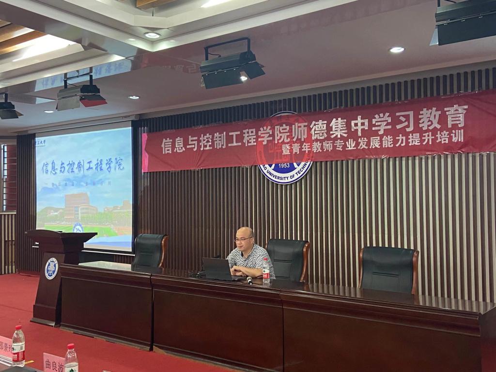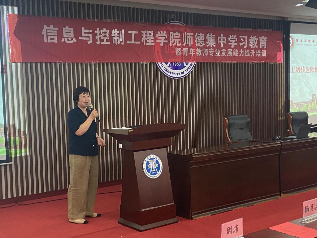 为推进学习贯彻习近平新时代中国特色社会主义思想主题教育走深走实,落实师德集中学习教育工作安排,系统提升青年教师专业发展能力,7月5日,信息与控制工程学院组织召开“师德集中学习教育暨青年教师专业发展能力提升培训会”。会议由学院党委书记高洁主持,人事处(教师工作部)副处长邵景玲、学院全体领导班子及近五年入职青年教师参加。
