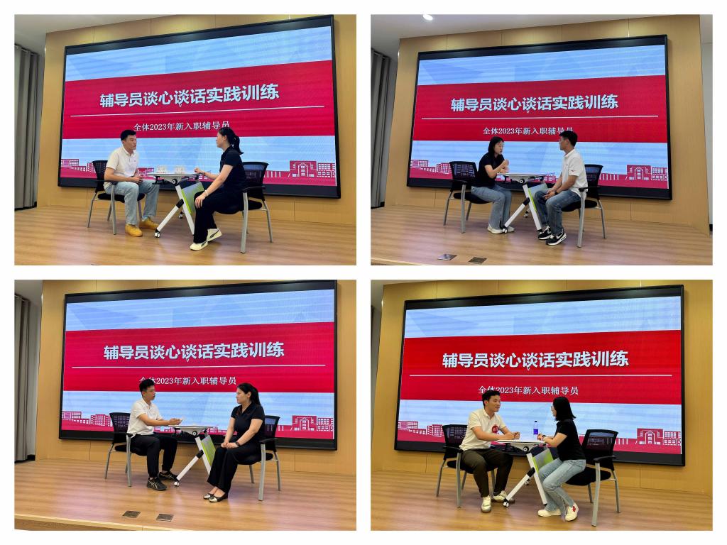 “谈心谈话”是辅导员的一项工作基本功,是辅导员了解、走近、关心、帮助学生的切入口。学生工作处将谈心谈话作为新入职辅导员的实战训练项目,新入职辅导员们以实景模拟的方式进行谈心谈话比赛,进一步深化了对学生工作的体悟与认知。山东省素质能力大赛三等奖获得者辅导员贾舒文结合大赛经验与工作经历,进行点评解析,使新入职辅导员充分认识到谈心谈话工作的重要意义,学习了工作技巧,坚定了将学生工作做细、做实的信念与决心。