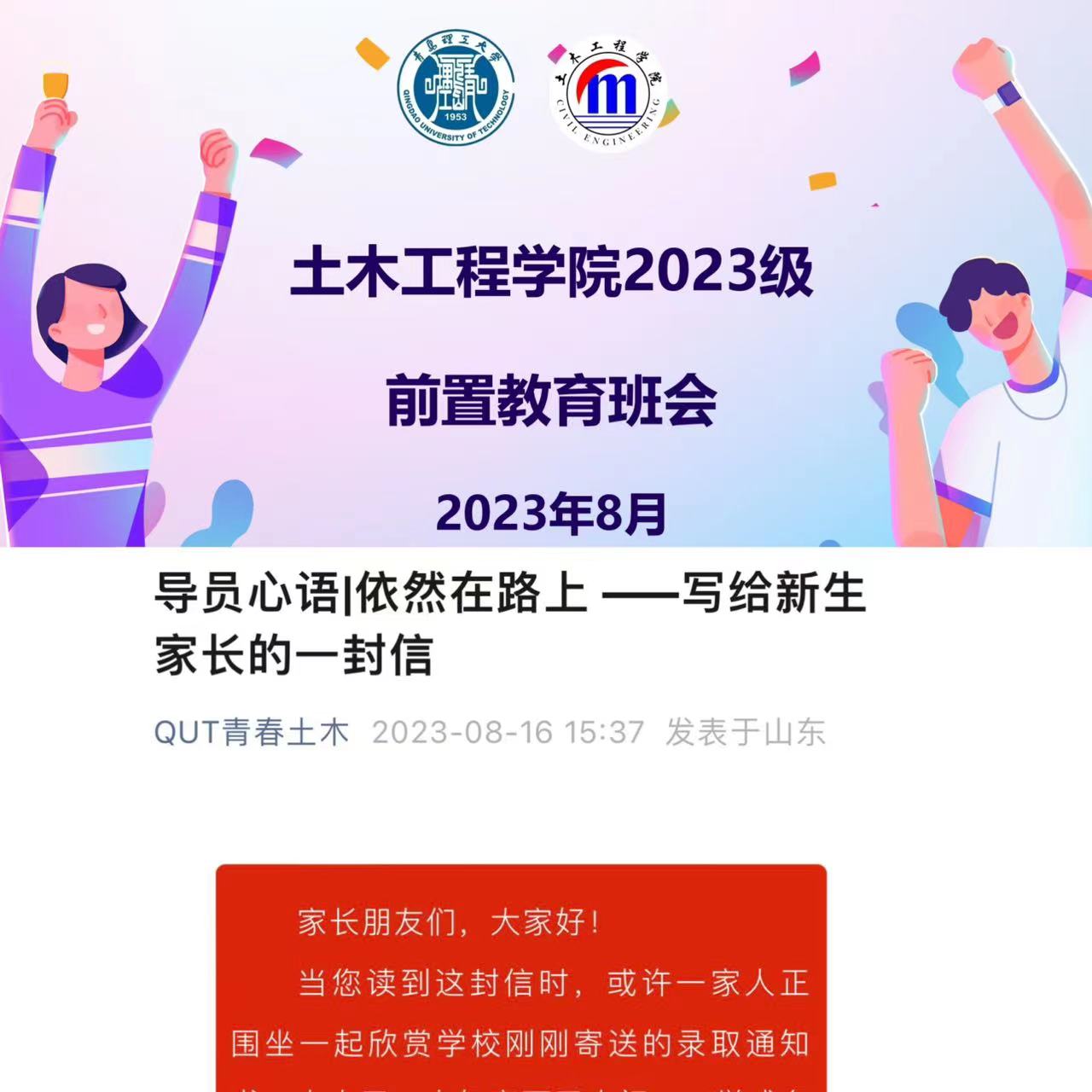 “近年来,学院不断探索高中——大学衔接教育,紧抓‘拔节孕穗期’,帮助新生扣好‘大学的第一粒扣子’。”青岛理工大学土木工程学院党委副书记邵先锋说,“开学之前,是准大学生录取与报到之间的‘空档期’,新生入学教育前置,可以有效帮助学生转变角色定位,坚定理想信念,开启学业规划,在大学跑道上跑出‘加速度’。”(撰稿:左安源;审核:邵先锋)