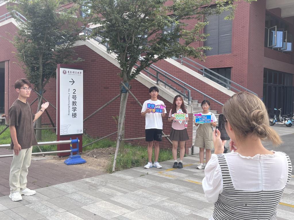“这里就是主教学楼,大家平时在这里上课。在没课的时候可以选择在图书馆自习也可以来这里自习。”2023级总班助马梦迪在直播中向新生们“云”介绍道。直播中,班助们通过一步一景的方式提前带领新生“沉浸式”体验了开学现场,提前熟悉了教学楼、实验楼、宿舍、食堂以及学院楼的位置。家长们也通过直播了解了孩子的学习环境、生活环境,掌握入学动态。让家长放心,让新生开心,新奇的体验引来新生们和家长们的连连点赞。“我现在无比的期待开学,我的大学的生活肯定会过得很精彩。而且我一定要好好学习,向优秀的班助学长学姐学习!”一位新生说道。