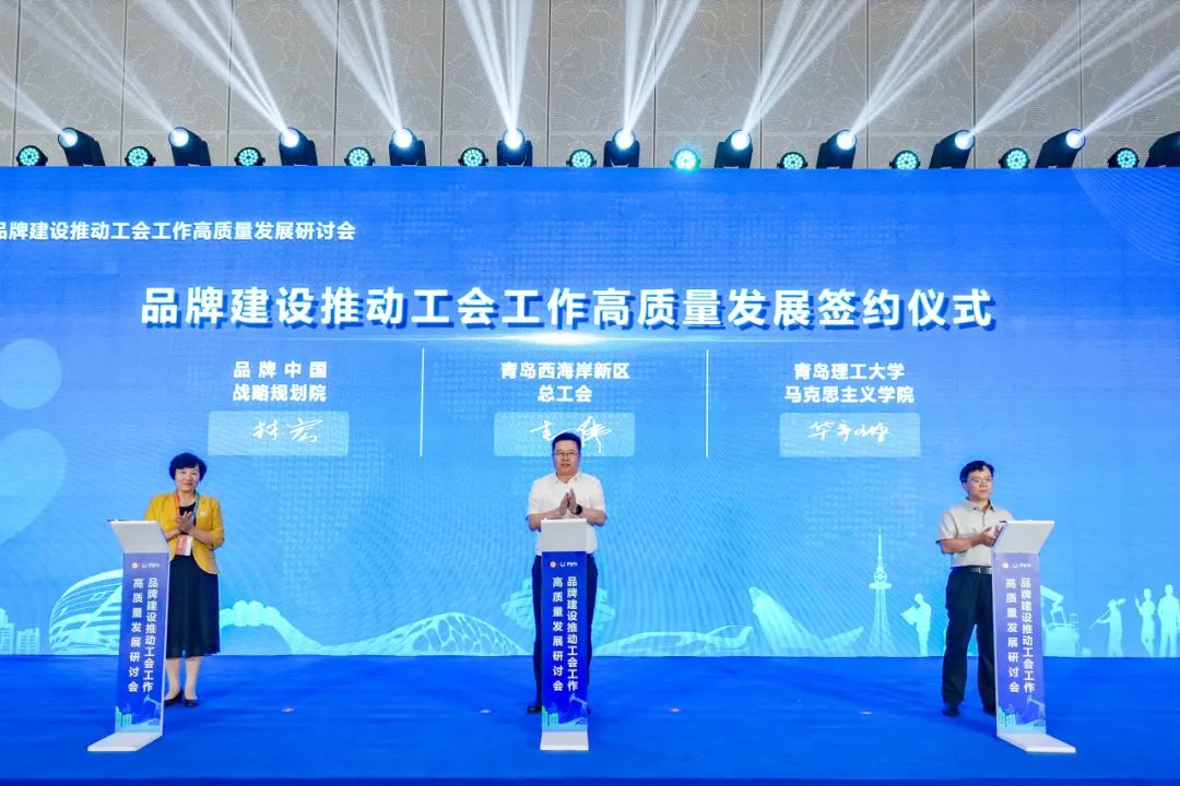 本次研讨会由全国新区开发区工会工作论坛理事会指导,青岛西海岸新区总工会主办,品牌中国战略规划院和马克思主义学院提供智库支持。研讨会上,全国新区开发区工会工作论坛理事会向青岛西海岸新区总工会颁发全国首个“品牌创建示范工会”荣誉牌匾。马克思主义学院、品牌中国战略规划院、青岛西海岸新区总工会三方签署高质量发展与智库支持战略合作协议,共同组建专门力量围绕工会品牌建设推动工作高质量发展开展策略研究与路径探索。青岛理工大学新时代国企党建协同创新中心与品牌中国战略规划院、全国新区开发区工会工作论坛理事会、上海闵行经开区总工会、天津港保税区总工会、烟台黄渤海开发区总工会、青岛明月海藻集团有限公司工会等机构负责人围绕工会品牌建设推动高质量发展等话题进行了对话交流,为推动工会工作高质量发展凝聚共识、汇聚力量。