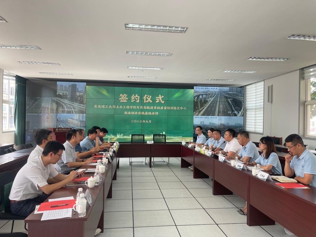 9月1日,土木工程学院赴青岛轨道市政城市物业公司举办校企座谈,启动就业创业实践基地平台揭牌仪式。学院教授曲成平、院长侯东帅及学院领导班子参加。青岛市政空间开发集团工程管理部部长陈际洲、城市物业公司纪检委员、工会主席赵峰、城市物业公司副总经理曲健等公司领导参加签约仪式。