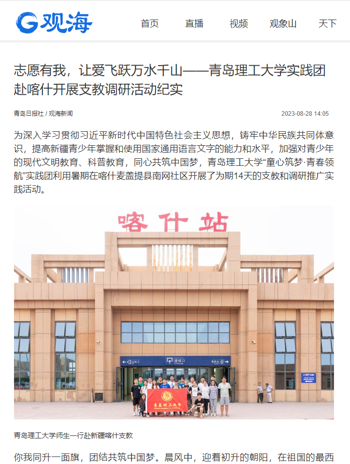 青岛日报社/观海新闻:志愿有我,让爱飞跃万水千山——青岛理工大学实践团赴喀什开展支教调研活动纪实