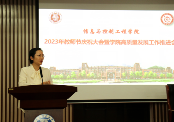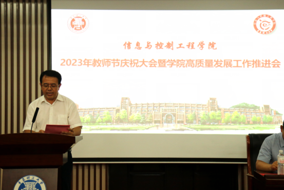 学院党委副书记、副院长曲良波宣读信息与控制工程学院关于表彰2021-2023学年教职工先进集体和先进个人的决定,学院领导班子成员、系主任为立德树人先进集体、先进个人和高质量发展先进集体、先进个人颁奖。