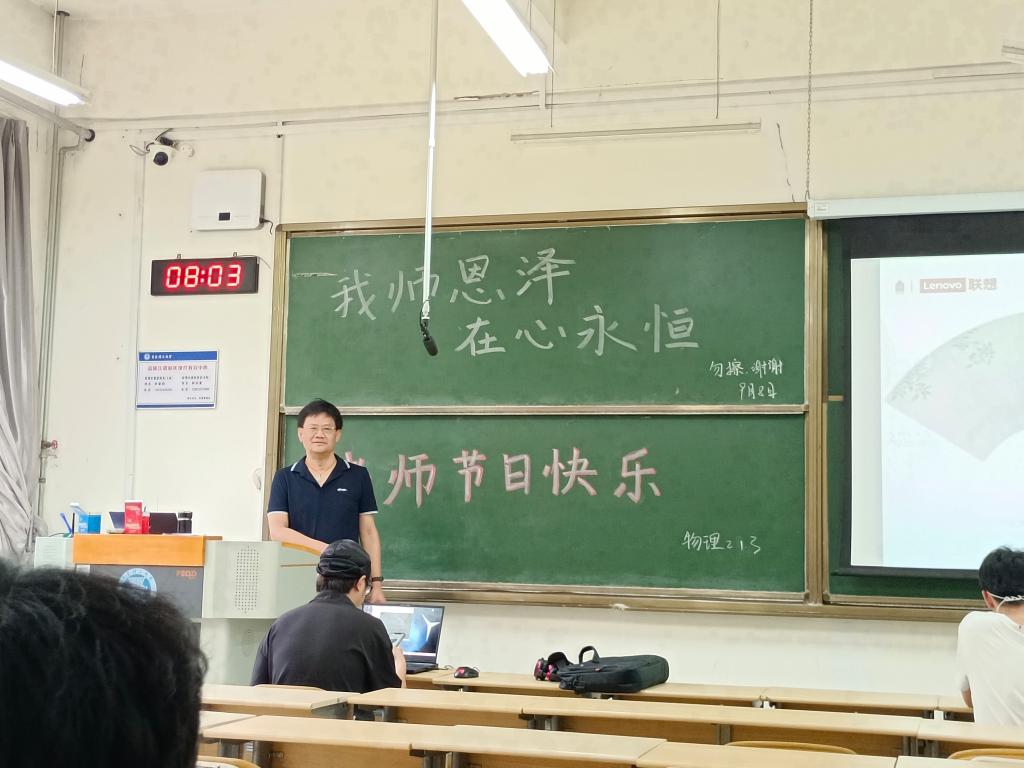 祝福进课堂,一声问候,一生情谊。“起立!”,“老师好!您辛苦了!祝您节日快乐!”,9月8日,在教学楼的教室内响起了庄严的课堂行礼声,学生们自发地向老师们整齐划一的行礼。在这个特别的节日里,学生们通过课堂行礼的方式,向辛勤付出的老师们致敬。一声“老师好”,是学生们对老师们谆谆教导的感激和敬意,一声“您辛苦了”是大家对老师们辛勤工作的肯定和赞许。在今天这样一个平凡的教师节,无论是两鬓斑白的教授,还是刚刚步入工作岗位的青年教师,都收获了一份不平凡的幸福,师生建立了浓厚的情谊。