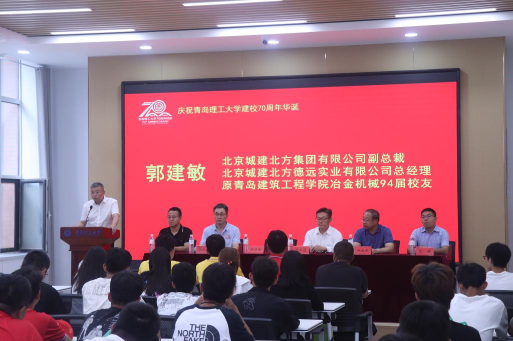 郭建敏现场分享了在青岛理工大学求学期间的经历和收获,介绍了公司取得的优秀业绩,分享了自己工作经验和体会,尤其感恩母校的教育和培养,感恩母校对自己成长过程中良好人生观养成的滋养。他表示,毕业后,一直关注母校的发展,回馈母校是他长久以来的愿望,此次捐赠是一个开始,希望未来能为母校的建设发展贡献更大力量。同时,也期望学弟学妹们认真学习专业知识、养成良好的道德品质,为母校增光,为社会发展作出贡献。