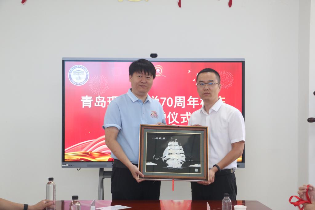 常洪雷代表金祖权教授团队向学院捐赠五万元,侯东帅为校友常洪雷颁发捐赠证书,并赠送纪念品。