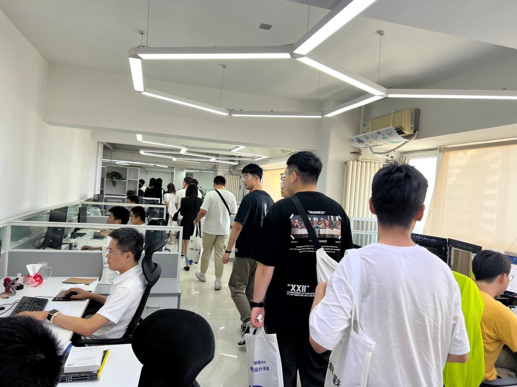 交流中,2006级校友陈曦结合入职以来的切身体会分别从初入职场、融入企业、公司培养、逐步成长等方面进行了分享,希望能够给即将面临就业选择的同学们一点启发和帮助。人力资源部负责人宋文姝围绕企业的发展历程、经营发展,以及2024年校园招聘计划中业务范畴、培养计划、福利待遇等方面,与同学们进行了互动交流。在企业工作人员的带领下,同学们参观了办公区域,中午在员工餐厅就餐,深入体验了工作氛围和工作环境。