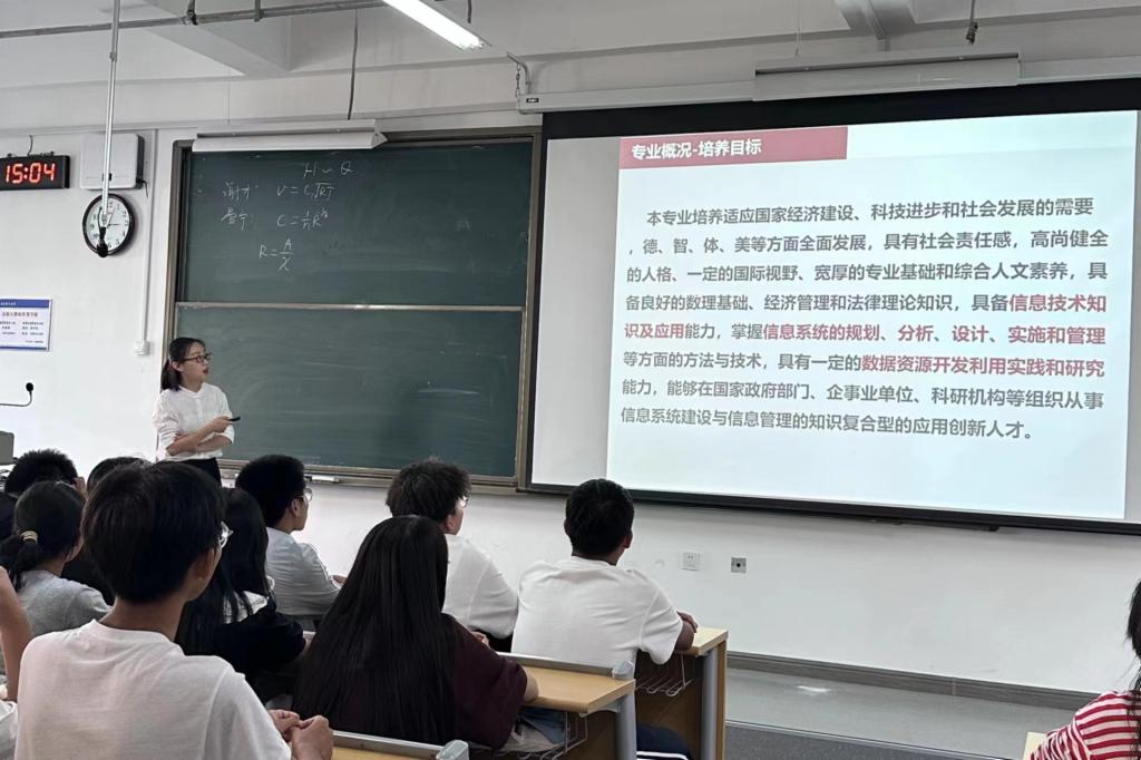 “我们信管专业于2004年开始招收本科生,2016年入选山东省高水平应用型本科专业群重点建设专业,2021年获批国家一流专业建设点。”信息管理与信息系统系副主任姜凤珍为新生们详细介绍了信管专业的发展历程,她表示,在当前信息化时代大背景下,大数据科学环境对学生各方面素质要求更高,同学们需要有更广阔的国际视野,立志高远,胸怀祖国,更加重视实践应用能力的培养,在信息化时代浪潮中用专业所长服务社会、国家发展。