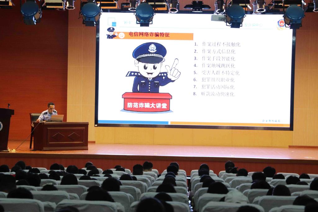 校区充分利用校内外教育资源,面向新生广泛开展防电信网络诈骗、防盗窃、防火灾、防交通事故等方面安全教育和宣传,增强新生安全防范意识。特邀属地新城派出所所长任鹏到校区开展防诈骗专题报告,任鹏结合实际案例,重点对电信诈骗、贷款诈骗、网络诈骗等形式进行讲解,并提醒广大同学要提高警惕,对于电信网络诈骗做到不听、不信、不转账,切实筑牢安全防范意识。
