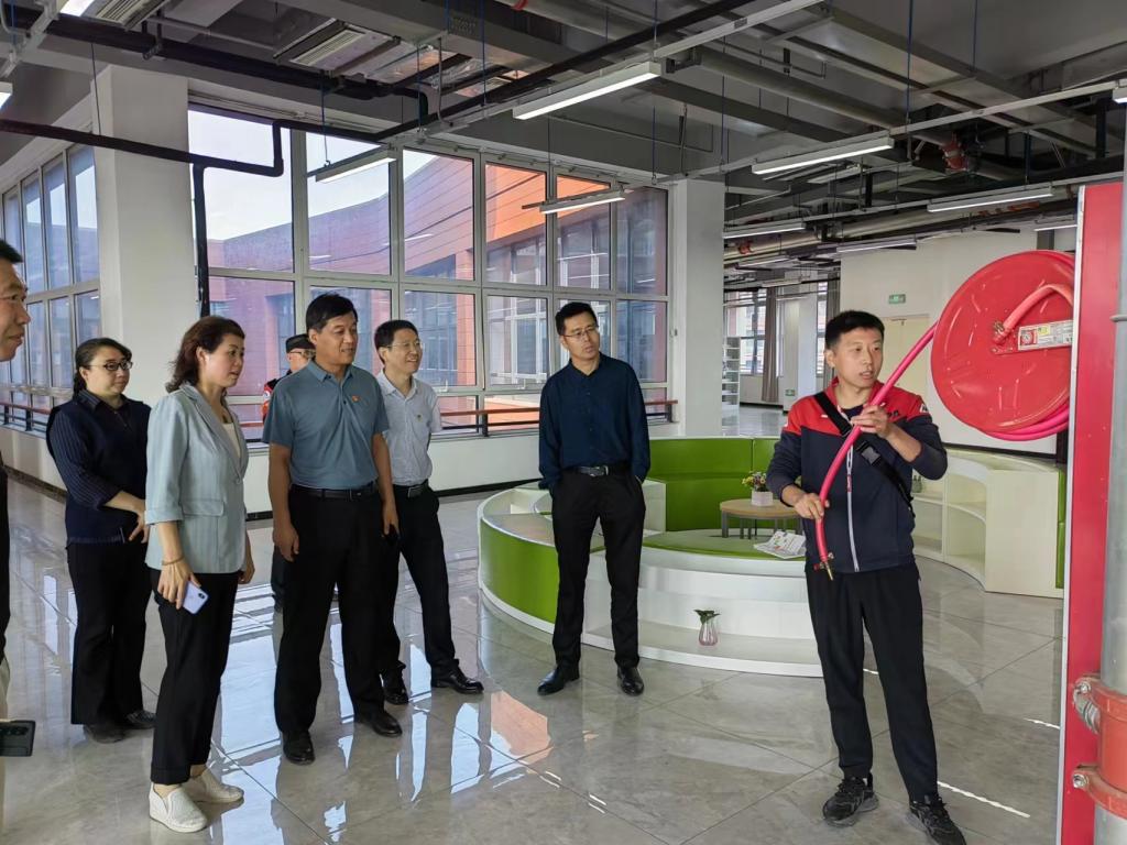 实地消防指导环节中,陈松、李威先后来到图书馆中文书库和档案馆库房,针对消防栓、排烟系统、报警系统、防火卷帘等消防设施的使用方法,进行了详细的讲解和模拟,对日常工作中需要注意的消防安全问题进行了提醒和检查。并与档案馆、工会、图书馆相关负责同志就各单位的消防安全管理制度及落实情况进行了交流。