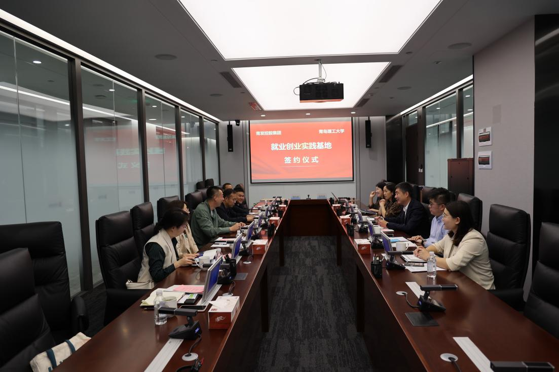 座谈会上,石泉对学校一行到访表示热烈欢迎,并从集团战略定位、人才体系等方面进行介绍。他表示,目前集团约有10%员工为青岛理工大学毕业生,十分感谢学校近年来为集团输送的优质人才,为集团快速发展作出的重要贡献。希望以此次活动为崭新起点,为学生提供更多实习就业机会,与学校一同探索更多板块协同发展的新模式、新路径。牟永川从近年学校发展情况、企业合作交流开展等方面进行介绍,他表示,青发控股集团承担着自贸片区的开发建设、国际贸易、招商引资等多板块任务,全面发挥着国有企业推动自贸区开发建设和经济发展的主力军作用,践行着国企担当。接下来学校将依托基地共建,充分发挥学校优势,为集团输送更多优质人才、提供智力支持,一道构建理念融合、科创融合、专业培养融合、实习就业融合的协同机制,合力打造校企合作的新样板。”校企双方代表就合作具体细节进行热烈交流,就具体事项达成一致,并签署《青岛理工大学就业创业实践基地合作意向书》,现场举行授牌仪式。