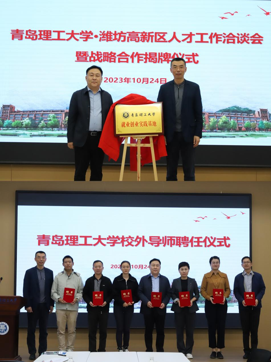借此双选会契机,学校开展潍坊高新区人才工作洽谈会暨青岛理工大学就业育人“双量”基地校企共建对接会,与“组团”前来招聘的潍坊高新区达成战略合作,同时为青岛大牧人机械有限公司等3家单位颁发了就业育人“双量”基地牌匾,聘任7位政企方优秀代表作为校外职业生涯规划与就业指导导师。进一步集聚资源,探索建立协同的人才培养体系、高效的科技创新体系、活力的创业就业体系及暖心的服务保障体系,形成政校企良性互动、优势互补的深度融合发展格局。