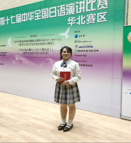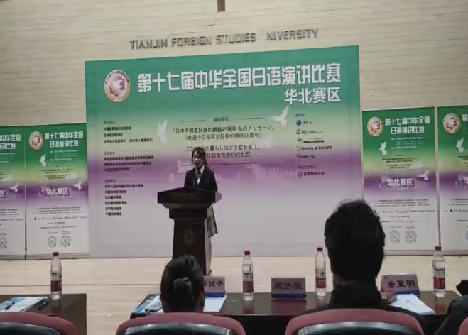 11月11日,由中国教育国际交流协会、日本经济新闻社、中日学术交流中心(日本华人教授会议)联合主办的第十七届中华全国日语演讲比赛华北赛区比赛在天津外国语大学举行。我校人文与外国语学院日语专业211班学生阎世赫作为学校代表参加了比赛,在27名选手中脱颖而出,荣获二等奖。这是我校日语专业在中华全国日语演讲比赛中获得的历史最好成绩,带队及指导教师李劲松获得优秀指导教师奖。