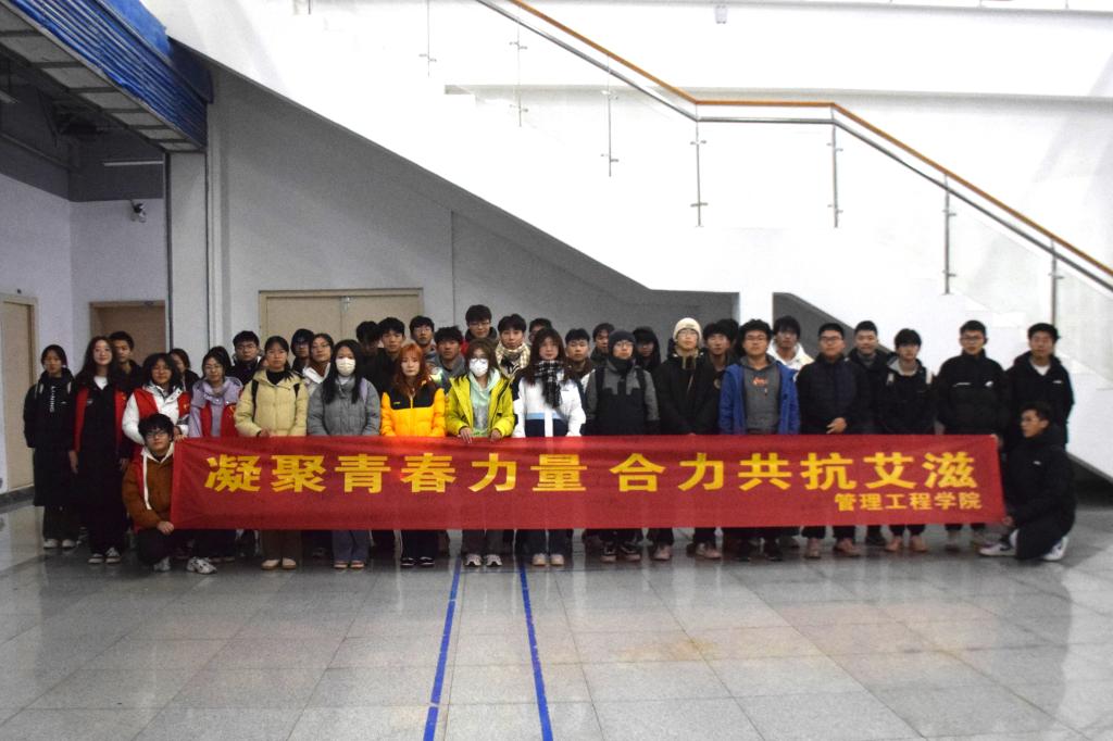 “凝聚青春力量,合力共抗艾滋”签名活动。在第36个“世界艾滋病日”来临之际,管理工程学院开展“凝聚青春力量,合力共抗艾滋”签名活动,通过此次宣传活动,广大青年学生充分认识到了艾滋病对人体的危害,了解艾滋病传播途径,引导大家树立起正确的认识,做到不歧视艾滋病人,同时关注自身健康,避免艾滋感染。在现场,师生纷纷在“合力共抗艾滋病”的横幅上签名并合影留念,表达关爱艾滋病人和防艾抗艾的决心和信心。