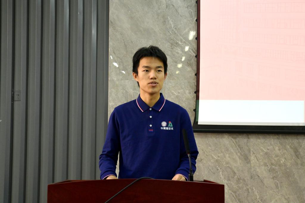 “中青建安班”学生代表徐世林同学发言,他对中青建安集团和学院为大家提供“中青建安班”这一平台表示感谢,立志刻苦学习、积极参加各类教学活动,勤于思考,勇于创新,努力成长为一名担当实干、诚信精益、追求卓越的高素质人才,为建设美丽祖国贡献力量。