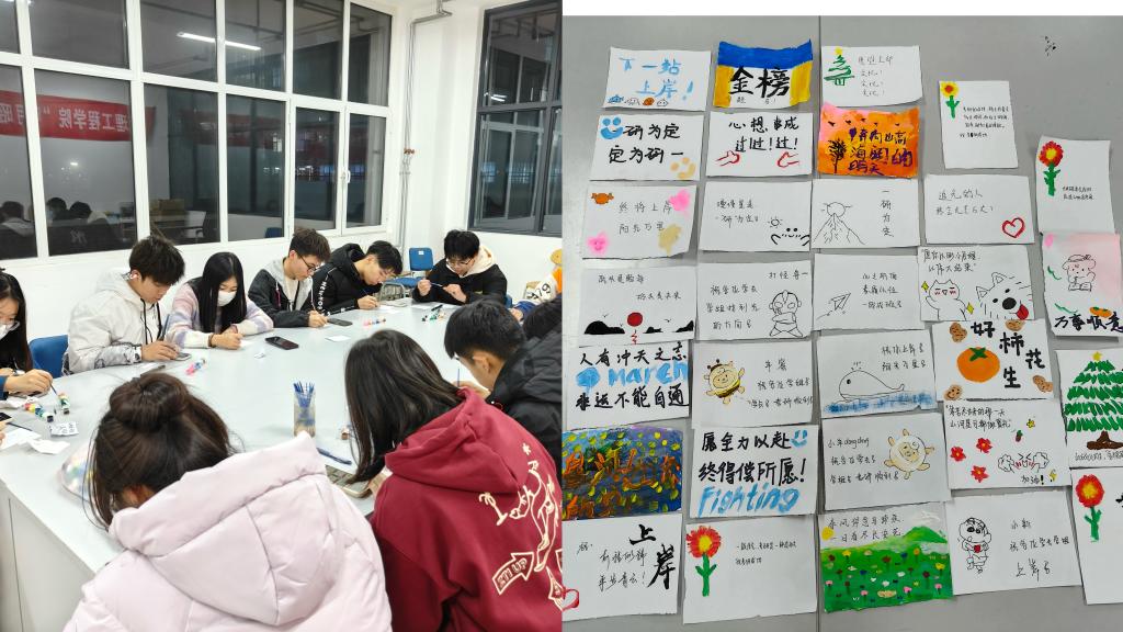 笔笔情意,一“研”为定。“万事胜意!”“终将上岸,阳光万里!”……每一句都蕴含着学弟学妹对学长学姐的美好祝愿。11月29日,管院各个年级的同学们自发组织执笔落纸,以便签、绘画的形式,为考研学长学姐送上内心最真诚的祝愿,写下激励话语,绘出温暖图画。考研学子们伴随着考研大礼包领取随机抽取幸运祝福!考研学生纷纷表示:“又一次被学院暖到了,学校和学院的关爱是对他们最好的鼓励,有了老师们和学弟学妹们的暖心祝福,自己会加倍努力、一“研”为定,让自己“研”途闪闪发光。”