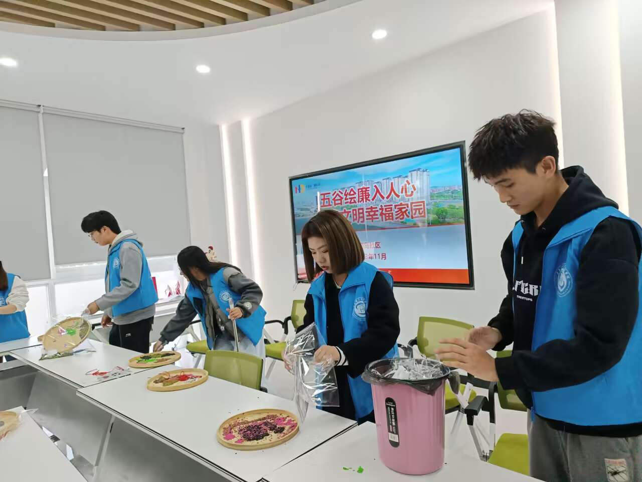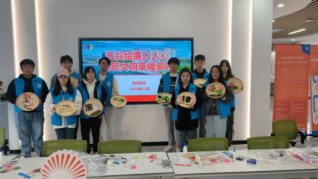 “共建清廉”,青春在社区服务中闪光。11月22日-12月4日,学院团委、学生会部门的学生骨干与南岛社区积极合作,组织50余名学生进入南岛社区开展清廉宣讲、共建清廉文化手工制作活动,协助南岛社区开展垃圾清扫、植树修剪、活动后勤服务等。其中,共建清廉文化手工制作活动以“五谷绘廉入人心 共筑文明幸福家园”为主题,将五谷画这一古老艺术与社区廉政建设有机结合,传播了廉洁理念,让廉洁意识更加入脑入心。“这是我第一次用谷物小米创作廉洁作品,太有意思了!”参与志愿者张毅讲到,对于自己首次的五谷画,他表示十分有意义,“以后,我会将秉承方便他人、回报社会的信念,在志愿服务的道路上披荆斩棘,继续积极参与各种志愿服务活动,为社会贡献自己的力量”。