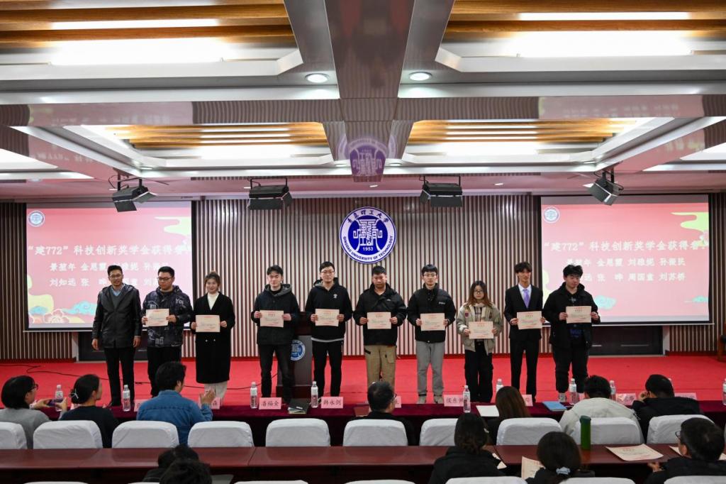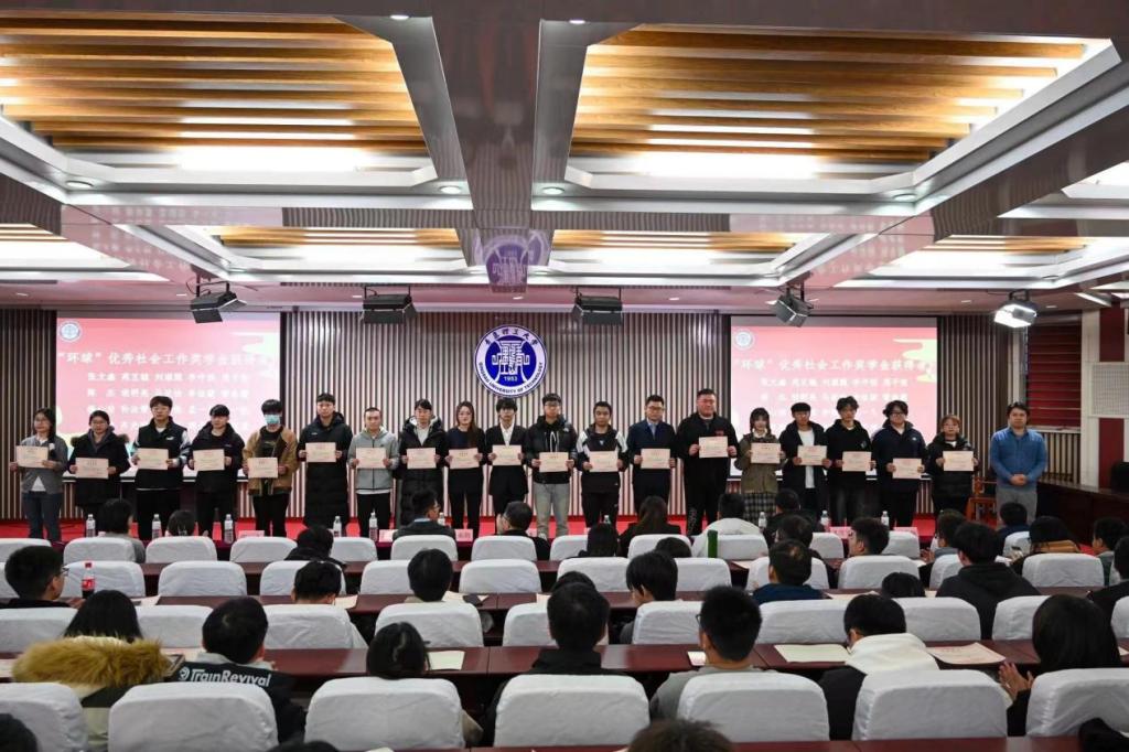 侯东帅宣读了《土木工程学院关于表彰2023年学风建设先进个人的决定》。曲璐莎为29名获得“烟建”奖学金的学生颁奖,韩永剑为81名获得“建 772”奖学金的学生颁奖,曾森为40名获得“环球”优秀学生奖学金的学生颁奖,与会领导向受表彰的学生颁发荣誉证书和奖品,并合影留念。