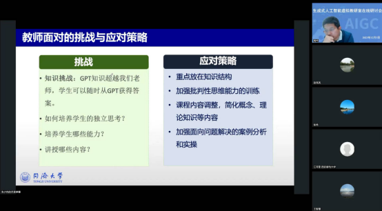 研讨会持续了三个多小时,参会教师纷纷表示受益匪浅。生成式人工智能、大语言模型是目前最前沿的研究领域,对人们的日常工作生活产生巨大的影响,对高校的教学、科研提出了新的要求,虚拟教研室的研讨,让高校老师紧跟研究前沿,不断提高自身水平,增强相互交流,共同探讨相关方面课程建设。(撰稿:王续澎;审核:周炜)