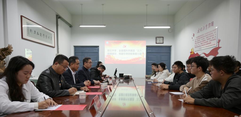 李忠晓带领大家集体学习了党的二十大报告“推进文化自信自强,铸就社会主义文化新辉煌”重要论述和习近平对宣传思想文化工作作出的重要指示。李忠晓指出,学院党委以习近平新时代中国特色社会主义思想为指导,高度重视共青团工作,通过开展理论共学,抓牢抓实党建带团建,用理论凝心铸魂,提升青年学生理论素养,增强大学生文化自信;发挥宣传思想文化的引领力,守牢思想宣传阵地,坚定青年大学生的政治信仰。听党话、跟党走,始终是共青团坚守的政治生命,党的坚强领导是共青团做好一切工作的根本保证。学院团干部要以高度的政治责任感和使命感,团结带动更多青年学生与党同心、与党同行,读原著、学原文、悟原理,切实做到真学真信真懂,推动党的创新理论入脑入心入魂,增强大学生强实践、建新功的综合素养。、