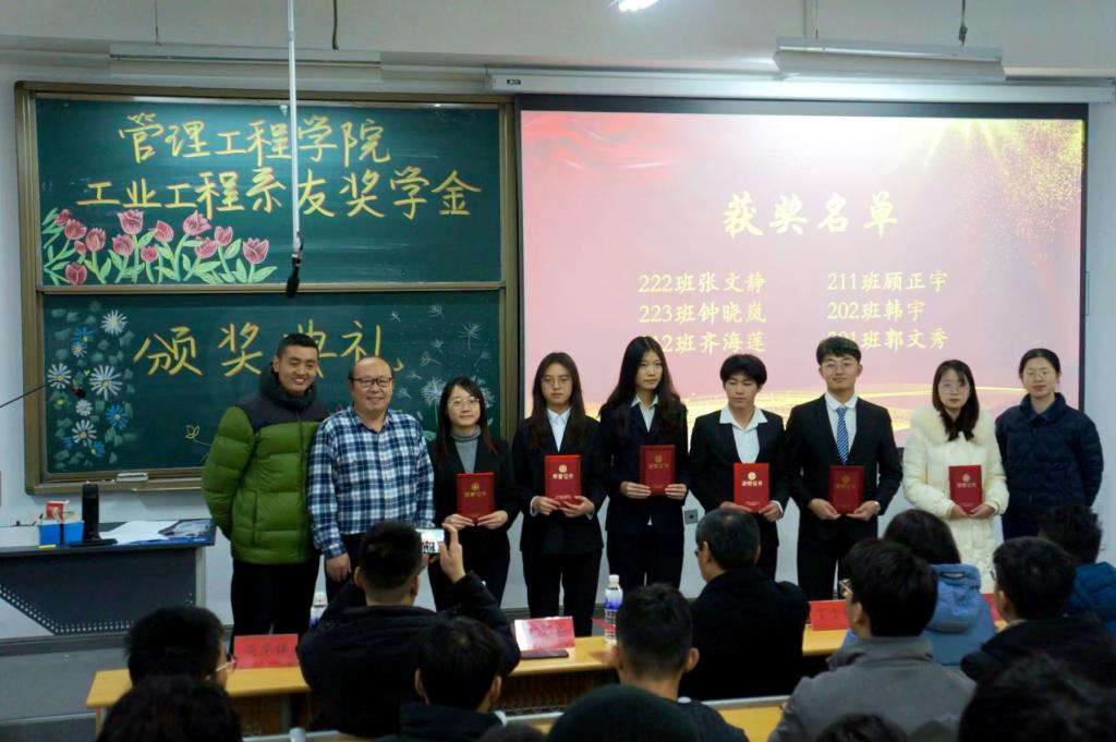 学院“工业工程系校友奖学金”是学校建校70周年之际,由工业工程专业校友发起,专项用于奖励工业工程专业的优秀生活困难学生的奖学金,是校友对母校深厚情谊的展现。颁奖仪式上,工业工程系主任刘玮琳介绍了“工业工程系友奖学金”的设置及基金使用情况,宣读了本年度“工业工程系校友奖学金”获奖名单;教师代表原丕业、校友高华锋、马玉容为奖学金获得者颁奖。