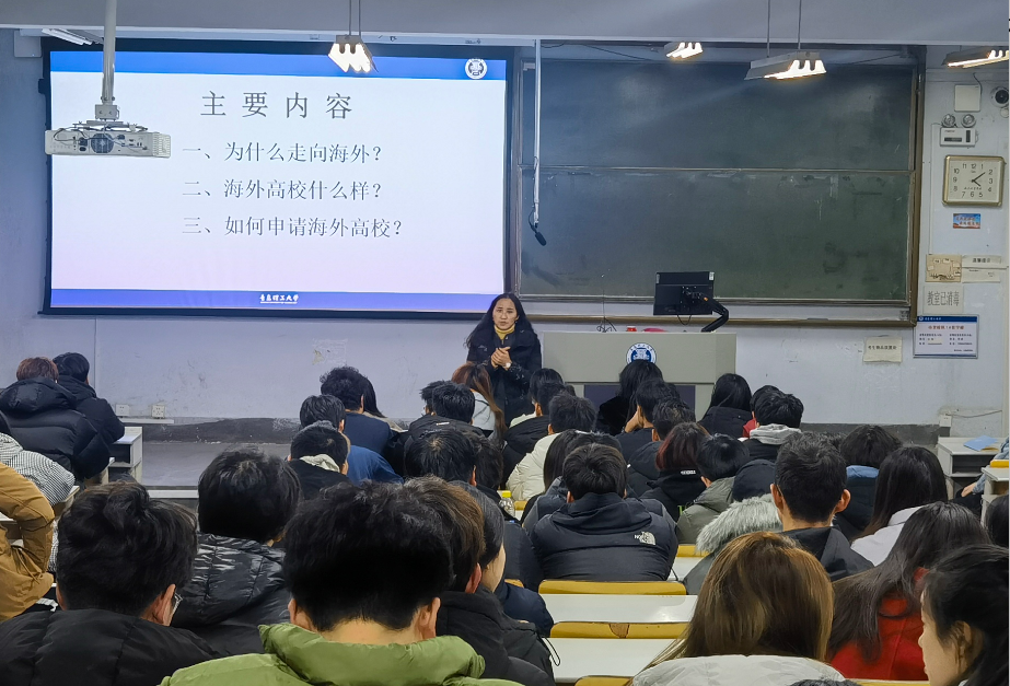 周红燕从理性规划海外求学、海外学习申请政策、渠道和技巧、学校主要海外合作高校和学生联合培养项目几个部分展开专题报告会。她结合我校优秀校友海外求学经历,鼓励大家按照职业生涯规划引导学业生涯规划,根据未来的职业目标,确定学习目标,做好大学生涯规划。周红燕结合自己十余年国际化办学经历,主要介绍了美国、加拿大、英国、德国、新加坡等国家高校的特点,从留学规划、申请程序、材料准备等方面详细讲述了申请政策和技巧。她表示,教育背景、科研经历、科技竞赛、专业实践、技能证书等都是申请海外学校的重要支撑,要提前规划,充分准备。最后,她重点介绍了学校与英国布拉德福德大学双学士项目、与英国赫尔大学双硕士学位项目、与新加坡国立大学“本+硕”双学位项目、与新加坡科技设计大学“本+硕”双学位项目、与日本樱美林大学、广岛大学交换生项目等。