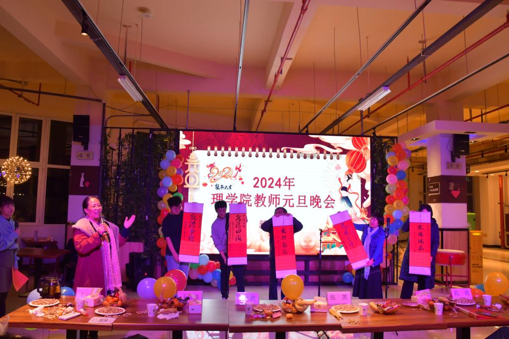 回首2023年守正创新、踔厉奋发,我们硕果累累;展望2024年,笃行不怠、勇毅前行,我们信心满满。元旦晚会 不仅为教职工提供了展现才艺和情感的平台,体现了理学院大家庭强大的亲和力、凝聚力和向心力,传递了教职工间的新年祝福,更是对学院一年工作成果的回顾和总结。新的一年里,学院全体教职工将以更加昂扬奋进的姿态和奋发有为的精神,锚定目标任务不放松,奋力书写学院内涵式高质量发展的新篇章,为学校“双高”建设和中国式现代化建设作出理院贡献、展现理院担当!(撰稿:刘奕;审核:邹传波、张效伟)